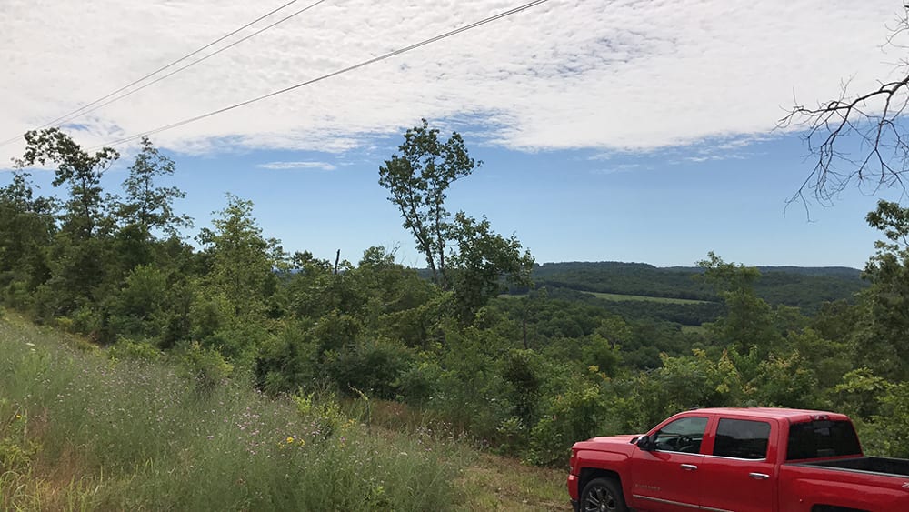 Please note that on the interactive map it seems to work best if you click the “View Full Screen” option. Once you are in the “Full Screen” option you can select “Topo” to see a topographic map which shows how the property is situated. It slopes down off of the county road and then back up to a nice ridge. The views from the ridges are great!
