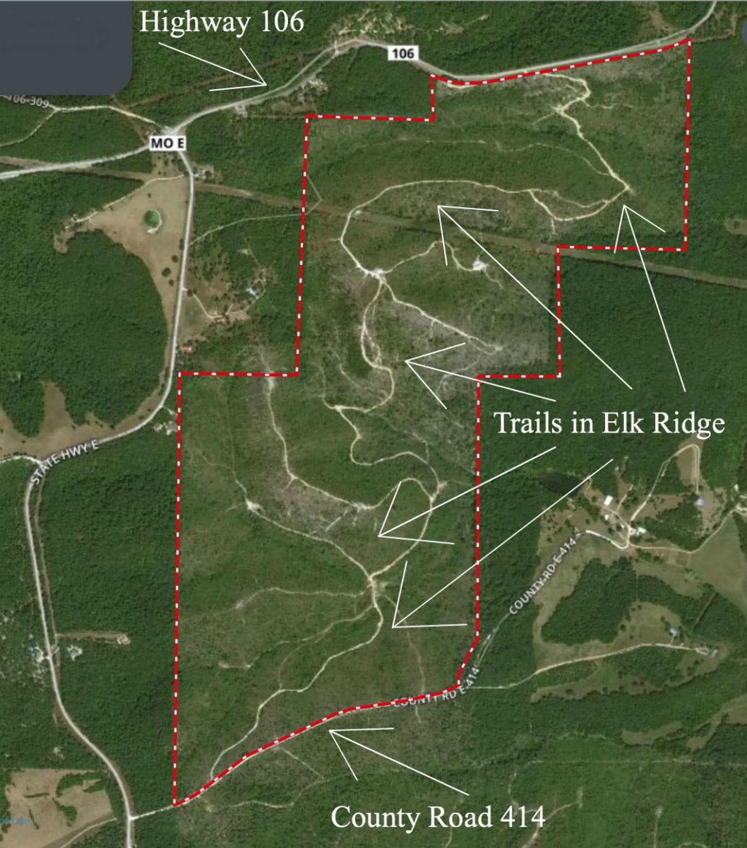 The map above shows part of the network of trails within Elk Ridge. These are not public roads, these are ONLY for the use of property owners and their guests. These existing roads can be used to access different areas of your property. These are VERY primitive roads (and they always will be). They are designed to be used for foot traffic, four wheelers or side-by-sides (Razors). These roads are permanent easements for property owners and their guests. When we were out at the property taking videos sections of the trails were VERY rough (we had a tremendous amount of rain just before taking the videos). Although we were able to make it through with a four wheeler, it was still pretty rough. The trail system connects to County Road 414 on the south end and Highway 106 on the north side of Elk Ridge. There is a trail and approach on the northernmost end of Tract 11 which is part of the easement road network.