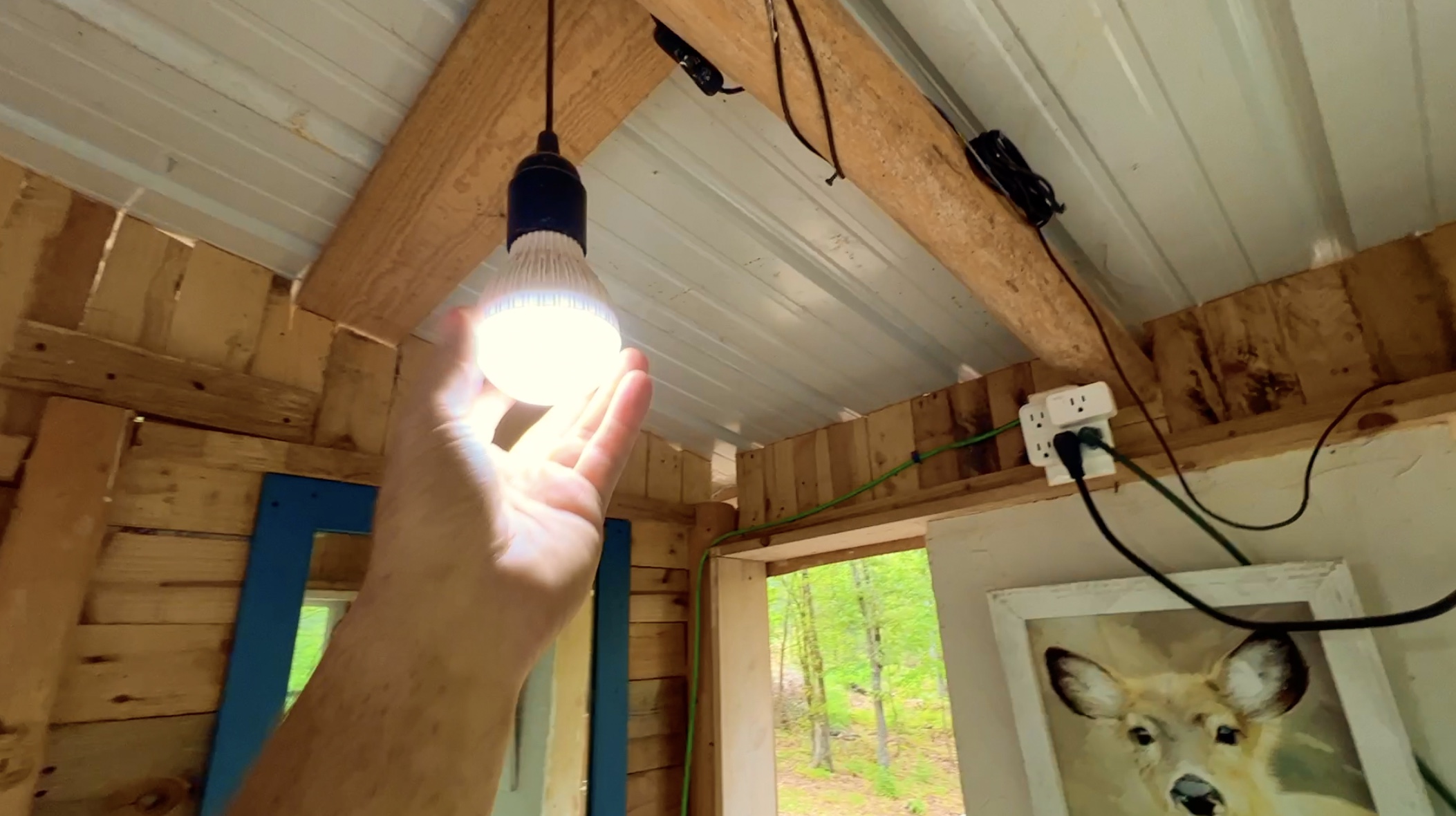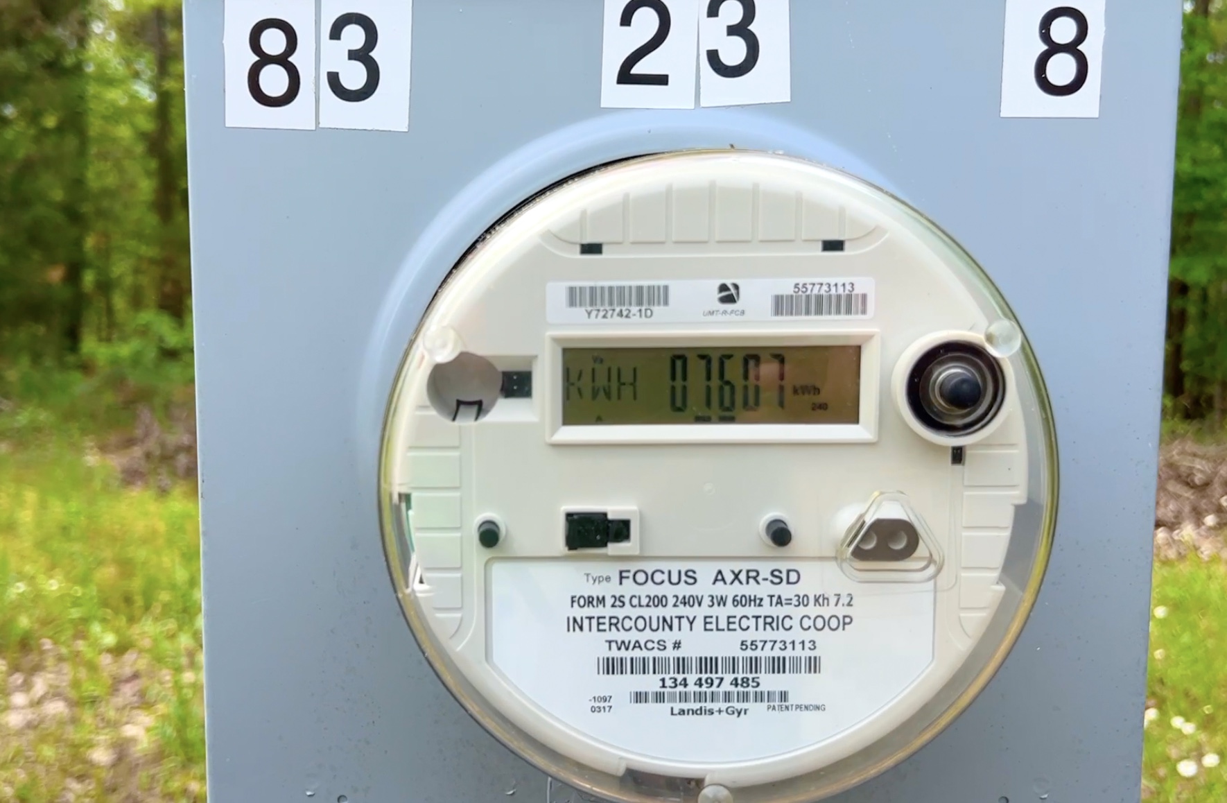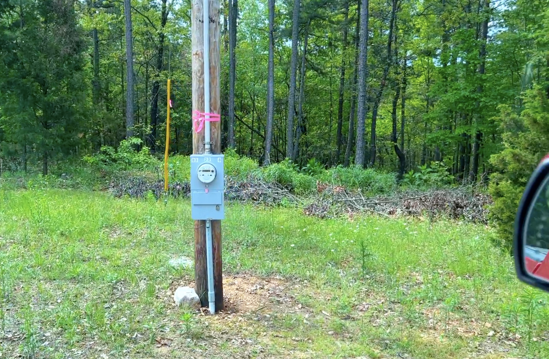 The photo above shows the power base and meter on the property. The power line has been run underground and serves the cabin. We LOVE the off-grid lifestyle but we also LOVE having access to electricity for when it is needed!