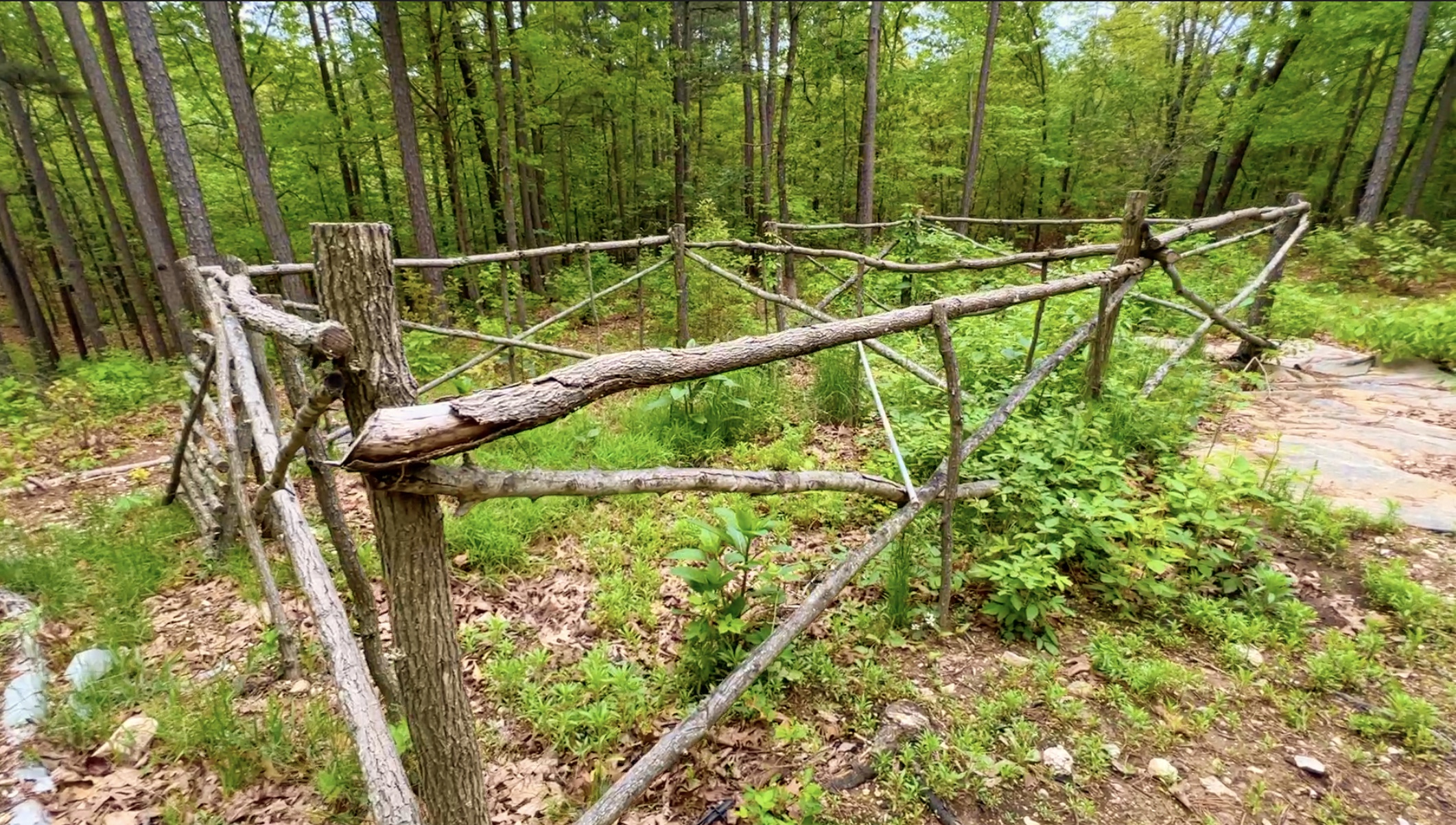 The photo above shows part of the large root cellar which is near the cabin. In the root cellar you will find several water tanks as well as some type of work bench. We did not see any type of drilled well on the property (although we did not search too much) so the water tanks are likely the water source for the cabin. We do not know what type of septic system (if any) is on the property. Because the property is over 5 acres in size there are few (if any) specific requirements that we know of regarding installing a septic system. We know of many people who simply use an outhouse for their “septic needs” so although there is probably some type of septic system in place you could likely improve it if you wanted to do so, without having to obtain a permit or any inspection.